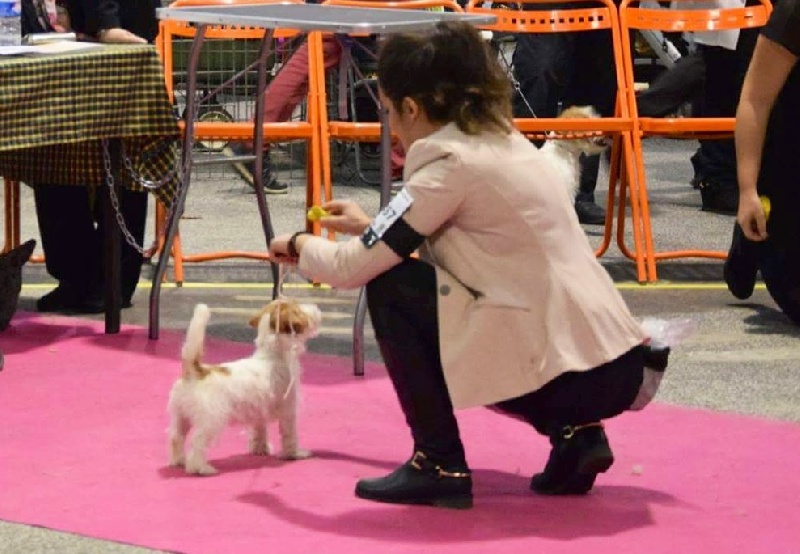 Excellent articulé Belle construction d'ensemble Excellente ligne de dessus Très jolie tête Belle expression Excellente attache et port d'oreille Excellente pigmentation Très bonne avant main, pourrait être plus rectiligne Poitrine et arrière main en ordre Excellente attache du fouet Très bonne texture de poil pour l'âge Démarche de bébé